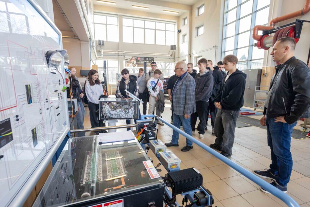 Nie zabrakło także prezentacji związanych z mechatroniką, nowoczesnymi systemami transportowymi i logistyką, w tym praktycznych rozwiązań wykorzystywanych w branży. Uczestnicy mieli możliwość bezpośredniego kontaktu z aparaturą dydaktyczną oraz poznania działalności kół naukowych, co dodatkowo podkreśliło praktyczny charakter kształcenia w Instytucie.